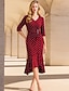 Tubino / Colonna Abito da cerimonia per signora Elegante Vintage Festa Scollo a V Asimmetrico Lunghezza Tè Poliestere Manica Lunga con Pieghe Perline
