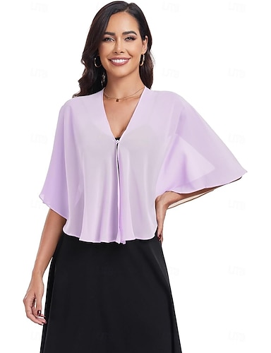 Coprispalle Scialli della Madre Scialli della Sposa Scialli dell'Ospite di Nozze Elegante Signore Formale Mezza Manica Chiffon Stole da matrimonio Con Colore puro Per Quotidiano Estate