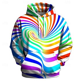 Per uomo Geometrico Illusione ottica Felpe con cappuccio Felpa Casual Manica Lunga Girocollo Con Cappuccio Abbigliamento casual alla moda Ferie Blu Nero Bianco Rosso Coulisse Autunno Inverno