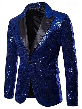 giacca da festa con paillettes da uomo, stile anni '70, stile retrò, casual, tinta unita, monopetto, un bottone, nero, oro, argento, rosso, blu