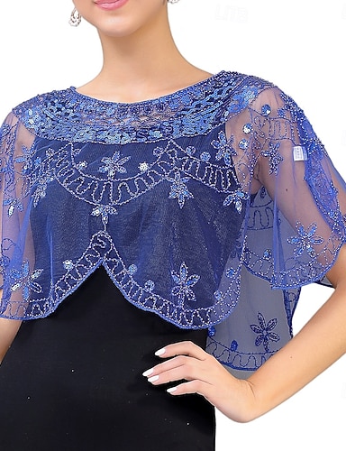 Scialle Donna Elegante Protezione Solare Manica Corta Pizzo Stole da matrimonio Con Paillettes Per Matrimonio Estate