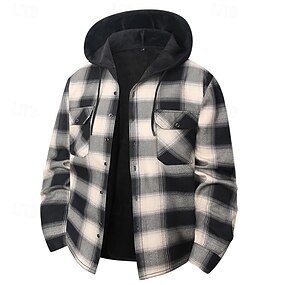 Per uomo Cappotto Invernale Giacca Camicia Giacca in Pile Giacca Casual Casuale Quotidiano Calore Termico Tasca Autunno Inverno Plaid Streetwear Quotidiano Con Cappuccio Regolare Blu Nero Bianco
