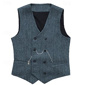 Per uomo Gilet Formale Vacanza Quotidiano Ricevimento di matrimonio Moda Casual Primavera Autunno Tasca Bottoni Poliestere Misto lana Confortevole Semplice Spina di Pesce Doppiopetto Scollo a V