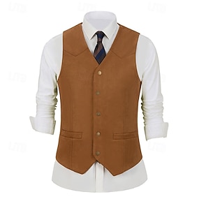 Per uomo Gilet in finta pelle scamosciata Gilet Vacanza Feste Affari Moda Casual Primavera Autunno Tasca Bottoni Poliestere Confortevole Semplice Monopetto Un Bottone Scollo a V Vestibilità regolare