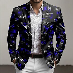 Per uomo Geometrico Giacca blazer Cappotto Confortevole Traspirante Artistico Casual Quotidiano Abbigliamento da sera Casual Tasca Stampa 3D Bottoni Tutte le stagioni Dentellato Manica Lunga Blu