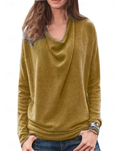 Per donna Felpa Maglione Casual Tinta unica A Coste Scollo a V Lavorato a maglia Manica Lunga Top Regolari Maglia Quotidiano Ferie Weekend Giallo Viola Autunno