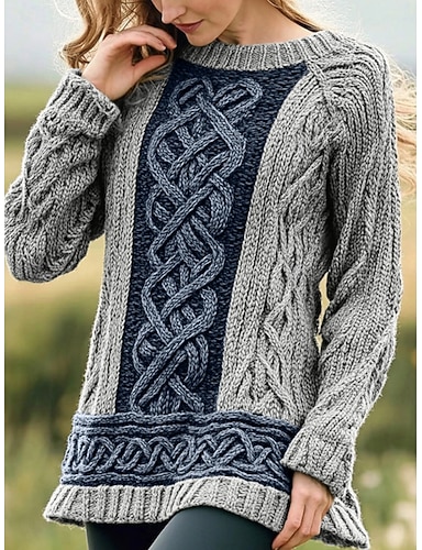 Per donna Felpa Vintage Stile Etnico Casual Colore Puro Treccia Girocollo Lavorato a maglia Manica Lunga Top Regolari Maglia All'aperto Quotidiano Weekend Blu Marrone Autunno Inverno