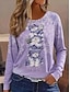Maglietta donna di Natale Pupazzo di neve Fiocco di neve Tunica Moda grafica Claus Vintage Stile Classico Maniche lunghe Collo rotondo Regular Tops Stampa quotidiana Viola Autunno Inverno