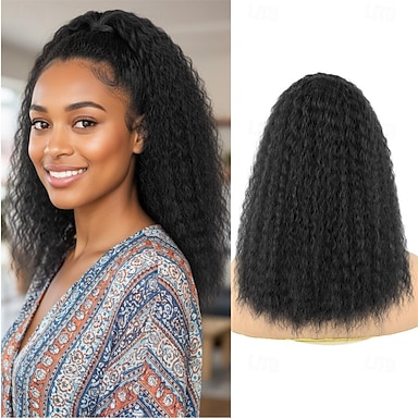 Extension per coda di cavallo con coulisse da 16 pollici, extension per capelli ricci e ondulati, extension per capelli sintetici con coulisse per uso quotidiano