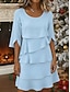 Per donna Bianco Blu Estate Primavera Autunno Mini Abito Abito a trapezio Abito con balze Vacanza Formale Abiti semi formali Formale Matrimonio Ufficio Vestibilità regolare Girocollo