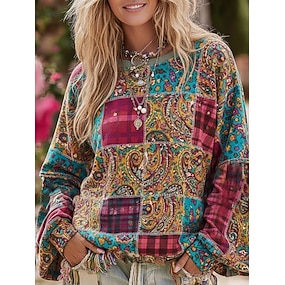 Per donna Felpa Pullover Grafico Tribale Astratto Moda Casual Manica Lunga Girocollo Top Regolari Streetwear Abbigliamento Quotidiano Casuale Stampato Blu Viola Cachi Autunno Inverno