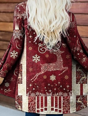 Per donna Cappotto Invernale Leggero Confortevole Stampato Apertura anteriore Vintage Moda Casual Babbo Natale Vacanza Casuale Lungo Senza colletto Vestibilità regolare Manica Lunga Capispalla Rosso