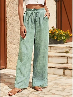 Per donna Finto cotone e lino Gamba larga Chinos Pantaloni Estivi Vacanza Essenziale Casual Lunghezza intera Vita Alta Semplice Fascia Elastica Comodo Comodità Morbido Micro-elastico All'aperto