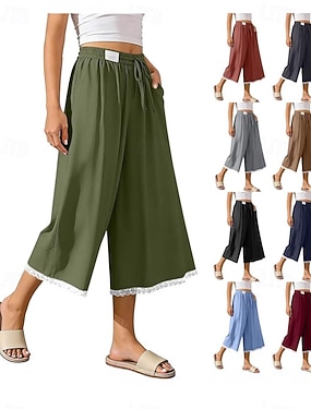 Per donna Gamba larga Chinos Vacanza Essenziale Lunghezza al polpaccio Misura del girovita medio Semplice Comodità Inelastico Quotidiano Blu Grigio scuro Marrone chiaro Nero Estate Primavera