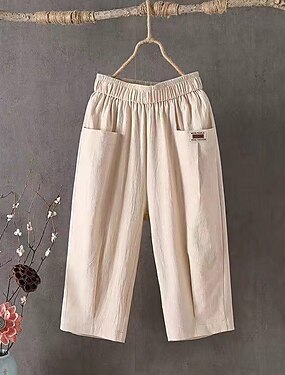 Per donna Pantaloni in cotone e lino Chinos Pantaloni Estivi Pantaloni harem Essenziale Casual Lunghezza alla caviglia Vita media Semplice Tasca Fascia Elastica Comodo Comodità Inelastico Quotidiano