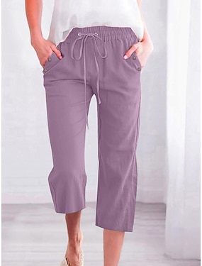 Per donna Pantaloni capri Finto cotone e lino Chinos Pantaloni Estivi Vacanza Essenziale Casual Lunghezza al polpaccio Vita media Semplice Coulisse Tasca Leggero Traspirante Inelastico Casa