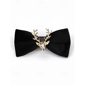 papillon da uomo in velluto con spilla a forma di testa di cervo dorata, elegante cravatta regolabile in vari colori, perfetta per feste di Natale, matrimoni ed eventi formali.