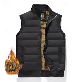 Per uomo Gilet imbottito Quotidiano Casual Autunno & Inverno Tasca Poliestere Caldo Tinta unica Cerniera Collo alla coreana Vestibilità regolare Nero Blu marino scuro Blu Cachi Gilet