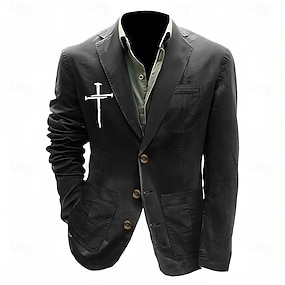 Per uomo Stampa Croce Blazer Giacca da abito in cotone Cappotto da abito Casual All'aperto Abbigliamento Quotidiano Tasche Multiple Giacca da abito con fodera a righe a tre bottoni Autunno Inverno