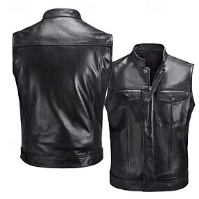 Per uomo Gilet Gilet in pelle Esterno Da tutti i giorni Da mare Per uscire Di tendenza Essenziale Autunno inverno Cerniera Tasche Ecopelle Tenere al caldo Liscio Cerniera Colletto Mao Standard Nero