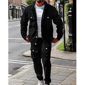 Per uomo Giacca Leggera Giacca Cargo Giacca Casual Set Vacanza Quotidiano Traspirante Tasca 2 Pezzi Primavera Autunno Semplice Moda Classico Bavero Regolare Nero Blu marino Cachi Giacca