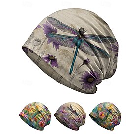 Cappello da donna in stile bohémien, in poliestere, con motivo a libellule e fiori, scaldacollo multifunzionale multicolore, ideale per l'uso quotidiano, le vacanze e i viaggi