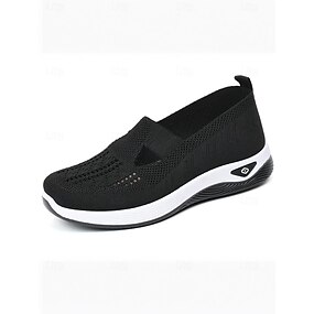 scarpe casual traspiranti Flyknit da donna – scarpe slip-on leggere con punta tonda per camminare, viaggiare e il comfort quotidiano