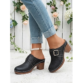mules casual nere da donna con tacco spesso - tomaia testurizzata con cinturino con fibbia, comode zoccoli slip-on per lavoro, passeggiate, viaggi, uscite informali &abbigliamento quotidiano