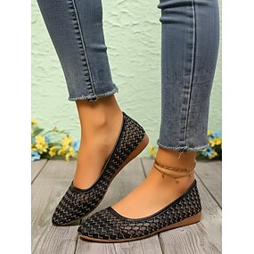 Ballerine da donna nere in rete, traspiranti, con fiocco decorativo, facili da indossare, comode scarpe basse casual per l'ufficio e per l'uso quotidiano. & estate