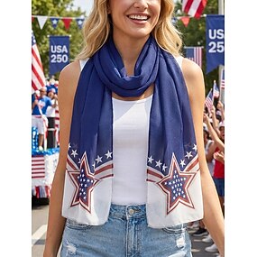 Sciarpa da donna in chiffon di poliestere con stampa patriottica, leggera e traspirante, con stelle, ideale per le celebrazioni del 250° anniversario dell'America, il giorno dell'indipendenza, l'uso quotidiano e i viaggi.