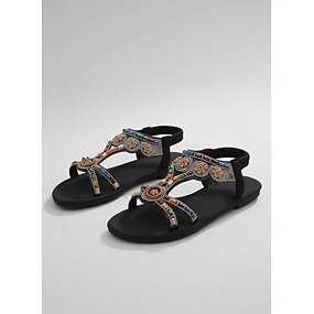 sandali comodi con strass da donna, sandali casual neri per il tempo libero in campagna &relax in spiaggia