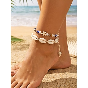 Set di cavigliere da donna in stile bohémien con conchiglie e ciondoli a stella, a doppio strato, lunghezza regolabile, perfette per le vacanze al mare, l'uso quotidiano e come accessori estivi.