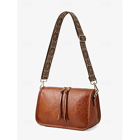 borsa a tracolla in similpelle marrone da donna con tracolla regolabile con fantasia - elegante borsa a tracolla per look casual e boho chic