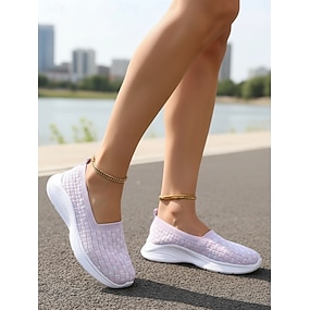 Sneakers slip-on da donna in Flyknit color lilla chiaro: scarpe comode, leggere e traspiranti, ideali per camminare tutti i giorni, viaggiare e stare in piedi a lungo.