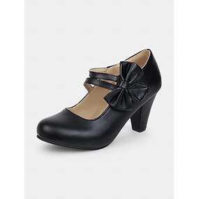 décolleté con tacco medio e fiocco rosa da donna - graziose scarpe eleganti in stile mary jane per feste, cosplay e outfit di ispirazione vintage
