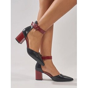 Eleganti décolleté da donna color block gialle e nere - comode scarpe con tacco a blocco e punta affusolata con cinturino alla caviglia, perfette per l'ufficio e per un look casual-elegante. &stile