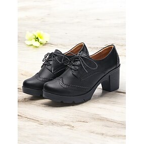 scarpe oxford brogue con tacco spesso e lacci azzurri da donna – tacchi a spillo di ispirazione vintage per abbigliamento casual e da ufficio