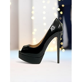 Scarpe con tacco alto e plateau in vernice nera da donna, sexy décolleté a spillo per outfit da festa e discoteca