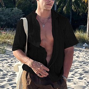 Per uomo Camicia Camicia casual Camicia con Bottoni Nero Bianco Giallo Albicocca Grigio Manica Corta Semplice Collo ripiegato Casuale Quotidiano Traforato Abbigliamento Elegante Moda Casual Spiaggia