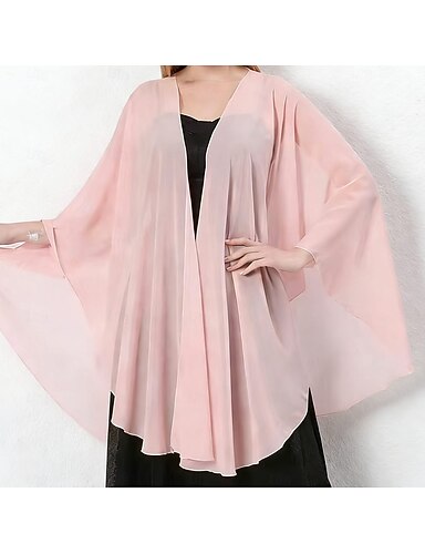 Scialle Donna Coprispalle Scialli della Madre Scialli della Sposa Scialli dell'Ospite di Nozze Elegante Signore Formale Manica Corta Chiffon Stole da matrimonio Con Colore puro Per Quotidiano Estate