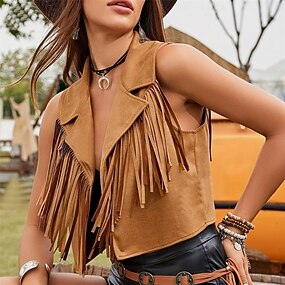 Retrò Vintage Anni '70 Disco Gilet in camoscio Senza maniche Hippie Disco Frangia con nappe Costume Per donna Halloween Carnevale Mascherata Festival Musicale Performance Parata dell'Orgoglio Adulti