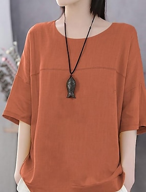 Per donna Maglietta Finto cotone e lino Semplice Essenziale Manica Corta Girocollo Top Regolari Quotidiano Weekend Blu Bianco Arancione Verde