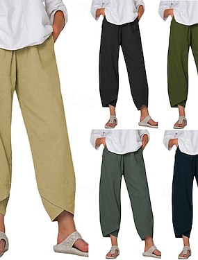 Per donna Finto cotone e lino Chinos Pantaloni Estivi Vacanza Streetwear Essenziale Lunghezza alla caviglia Vita media Semplice Coulisse Tasca Comodo Traspirante Inelastico Quotidiano All'aperto