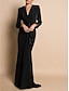 Abito a tubino Madre della Sposa Ospite di matrimonio Festa formale Elegante Collo a V Strascico  Spazzola Tessuto elasticizzato Chiffon Manica lunga con drappeggi arricciati taglia personalizzata