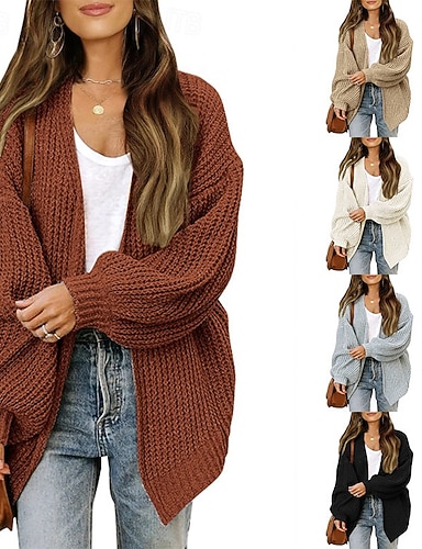 Per donna Felpa Cardigan Casual Morbido Colore Puro Uncinetto Aperto davanti Lavorato a maglia Manica Lunga Top Regolari Maglia All'aperto Quotidiano Weekend Rosa Cachi Autunno Inverno
