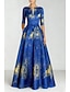 Linea ad A Lunghezza al pavimento Abito da Sera Da principessa Abito formale Elegante Vintage Mezza Manica Colletto a Camicia Formale Matrimonio Tasca Raso con Stampa floreale 2025