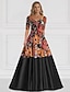 Linea ad A Lunghezza al pavimento Lunghezza alla caviglia Abito da Sera Da principessa Abito formale Elegante Vintage Manica Corta Monospalla Formale Matrimonio Tasca Nylon con Stampa floreale 2025