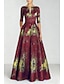 Linea ad A Lunghezza al pavimento Lunghezza alla caviglia Abito da Sera Da principessa Abito formale Elegante Vintage Spacco Alto Mezza Manica Scollo a V Formale Matrimonio Tasca Nylon con Stampa