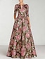 Linea ad A Lunghezza al pavimento Abito da Sera Da principessa Abito formale Elegante Vintage Manica Corta Scollo a V Formale Matrimonio Tasca Raso con Stampa floreale 2025