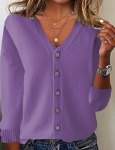 Per donna Felpa Cardigan Elegante Moda Streetwear Tinta unica Colore Puro Scollo a V Bottoni Lavorato a maglia Manica Lunga Top Regolari Maglia All'aperto Quotidiano Weekend Nero Viola Autunno Inverno